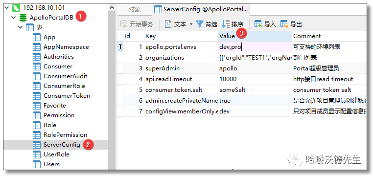 配置项统一存储在 ApolloPortalDB.ServerConfig