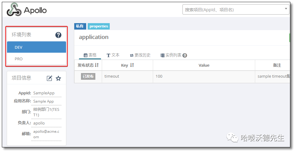 再访问:192.168.10.101:8070 输入 Apollo/admin 进行登录,点击案例项目 SampleApp 进入项目首页,看到多环境说明搭建成功,后续的操作就和之前讲的一样了,这里就不再过多赘述。