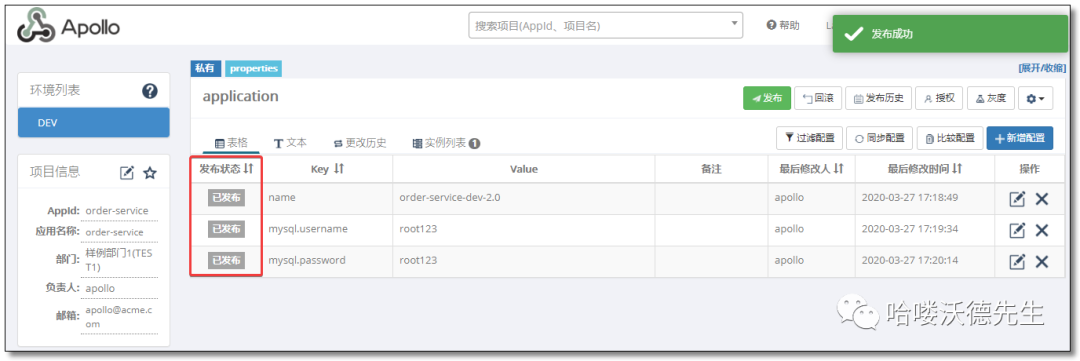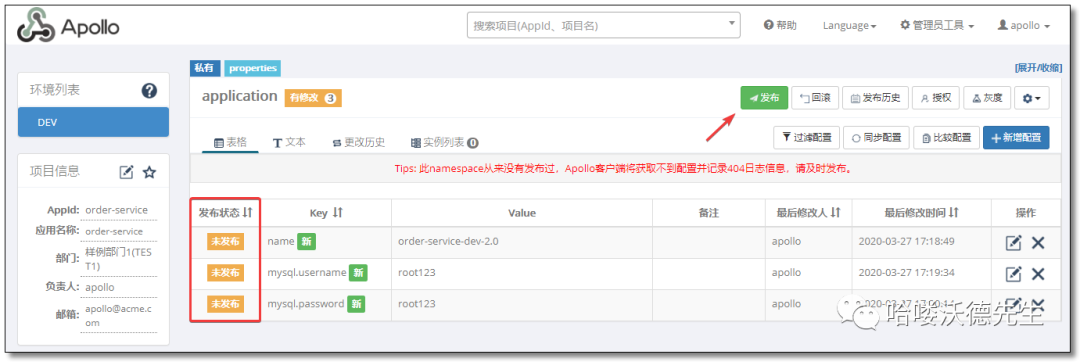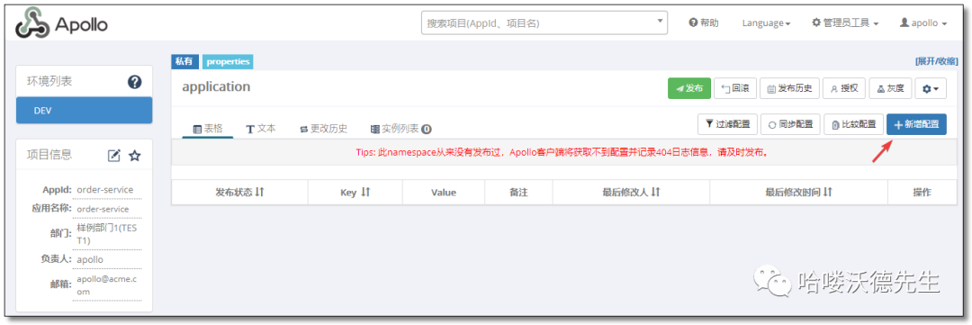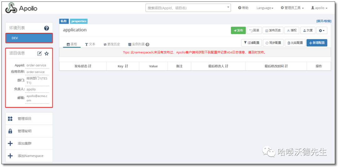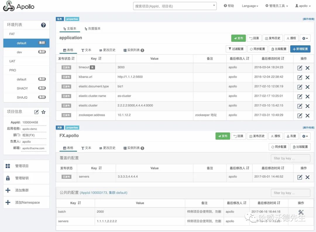 上图是Apollo配置中心中一个项目的配置首页