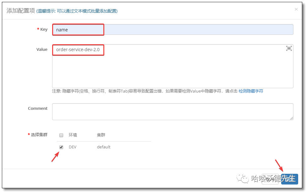 添加配置项 name