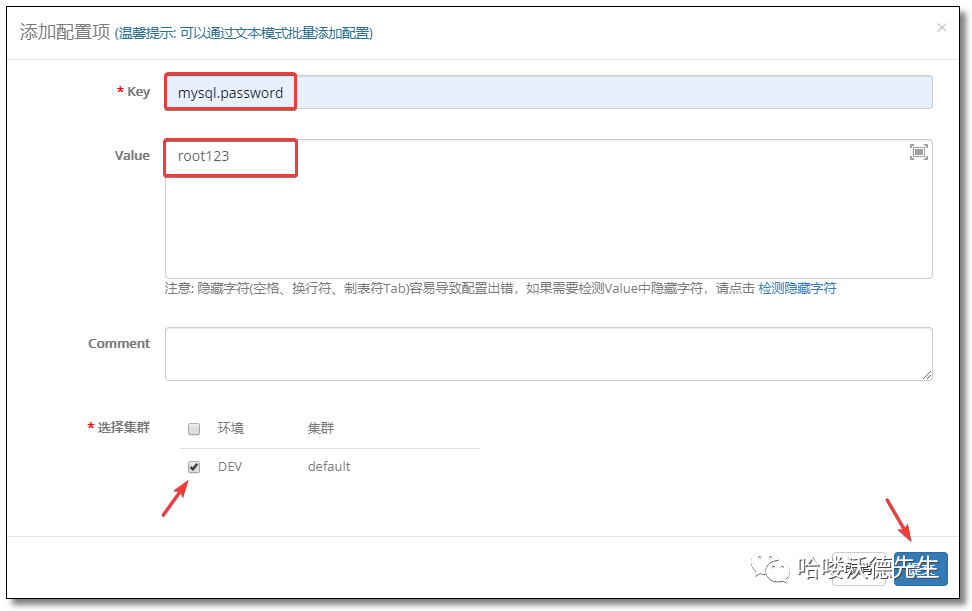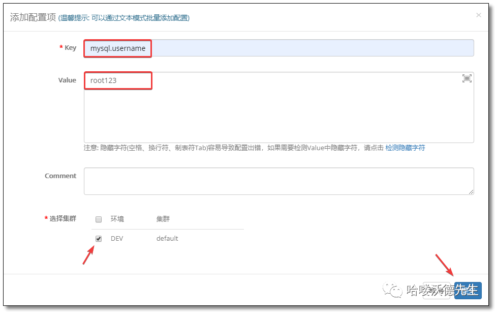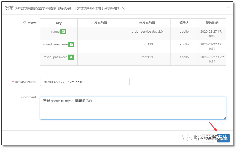 将刚才添加的配置信息批量发布至应用。