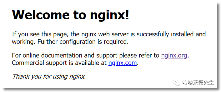 Nginx 默认端口为 80,访问:http://localhost:80/ 看到下图说明安装成功。