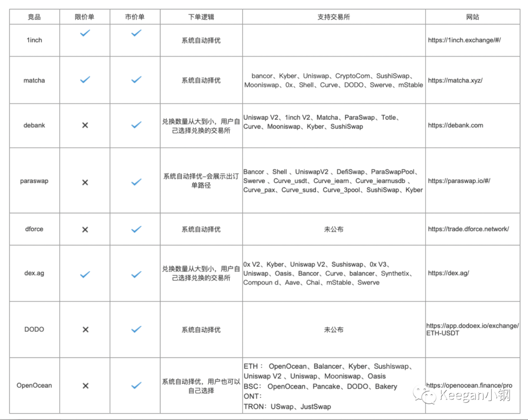 目前,DeFi 赛道中,专门做 DEX 交易聚合的产品挺多的,以下是其中一些平台: