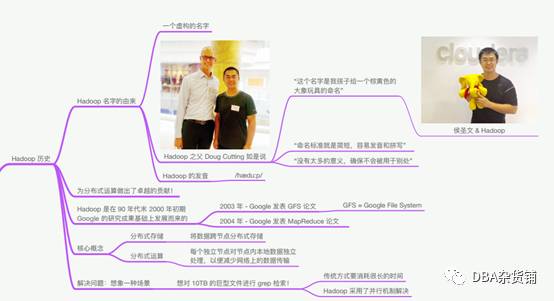 Hadoop是基于google的研究成果发展而来。分布式存储基于2003年,google发布的GFS(google file system),分布式运算基于2004年,google发布的map reduce论文。