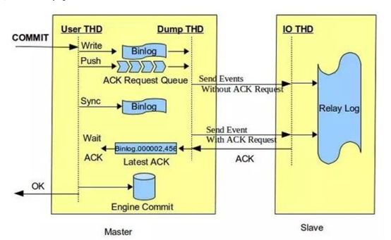 这里我们说它是半同步复制,是因为如果slave端没有接收到这个反馈ack的话,它就会变为普通的异常复制。