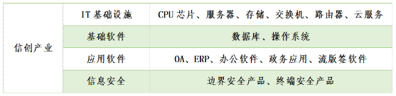 信创是一个统称概念,实际是把现有与信息技术相关的行业结合在一起,命名为“信息技术应用创新产业”,简称“信创”。围绕计算机相关的硬件、软件、信息安全等领域,都归属于信创的范围内,其主要行业如下图: