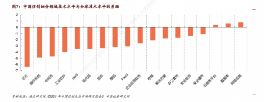 该券商同时指出,我国信创软硬件生态已初步建立。信创产业生态主要由底层硬件、基础软件、平台软件、应用软件、信息安全组成。从技术成熟度来看,我国的云服务、数据库和网络设施领先全球,基础软硬件有待进一步成熟。