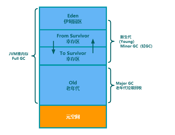 Full GC可以理解为Major GC+Minor GC组合后进行的一整个过程,是清理JVM整个堆空间(年轻代和老年代空间)。