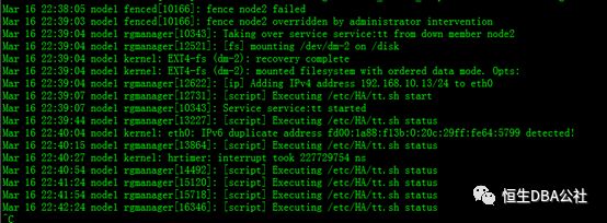 RHCS在使用内部Fence设备(大多数情况下使用服务器的管理口IMM/ILO/IDRAC等),在服务主节点服务器突然断电情况下,RHCS服务不会发生切换,备用节点又无法检测到主节点状态而无法接管相应的服务。fence_ack_manual命令可以通过手动方式产生一个fence回复信息,强制接管服务。相关过程如下: