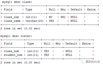 1. 所查询的记录的字段都来自于class表,roster表中的字段并没有参与