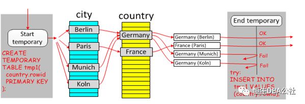 1. 当使用了DuplicateWeedout的策略时,会在Extra列中显示Start temporary和End temporary的提示