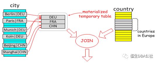 4. Materialize: 将inner-table去重固化成一个带索引的临时表,索引可以被用来去除重复记录,或者被用来与外部表进行关联。