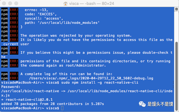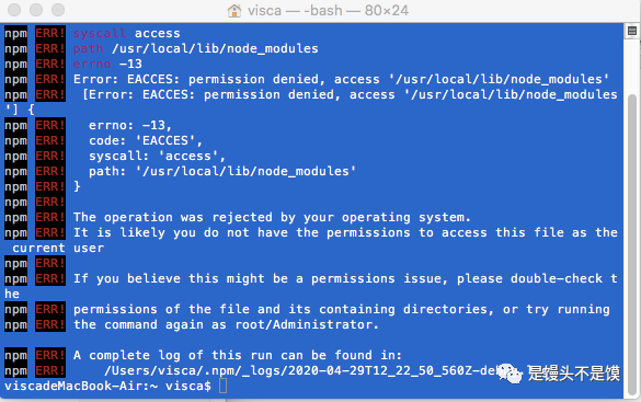 然而安装之后开始了大规模error。重新加上sudo获取最高权限就能重新成功安装。