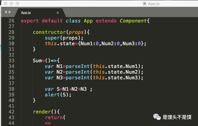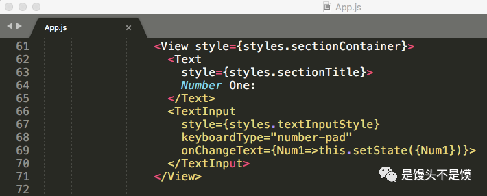 与Java的输入文本的EditText不同的是react js调用了TextInput来完成输入文本的功能,没有id可以协助其获取其输入值。因此需要定义3个相应状态来协助取值。当输入的文本发生改变时,更新状态。