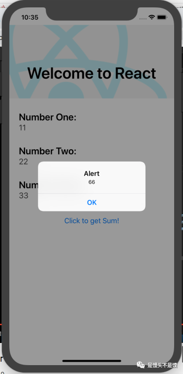 最后,基于iOS实现的功能UI如下图,输入3个数字后,点击按钮,得到弹出的总和结果。