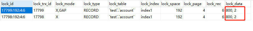 当插入money=600时,它的next索引结点是800,800位于锁定范围内,因此插入时会阻塞;