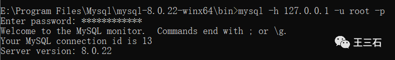 mysql -h 127.0.0.1 -u root -p输入指令后,输入密码。