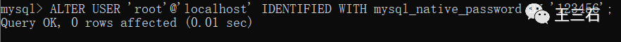 ALTER USER 'root'@'localhost' IDENTIFIED WITH mysql_native_password BY '需要修改的密码';修改成功,如下图: