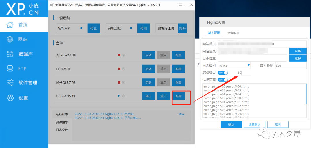 默认端口号为80,可以根据情况在配置中自行修改,我这里改成10