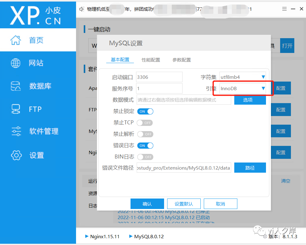 首先需要在小皮面板中配置并启动MySql服务,注意需要安装MySql5.7以上版本
