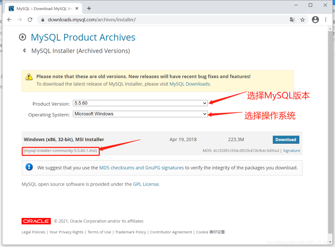 1、下载MySQL安装包