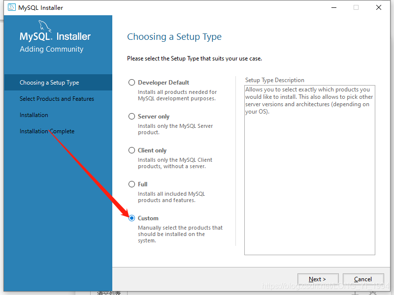 安装包下载完成后,双击运行,开始启动安装程序,在安装选项类型里选择Custom选项。