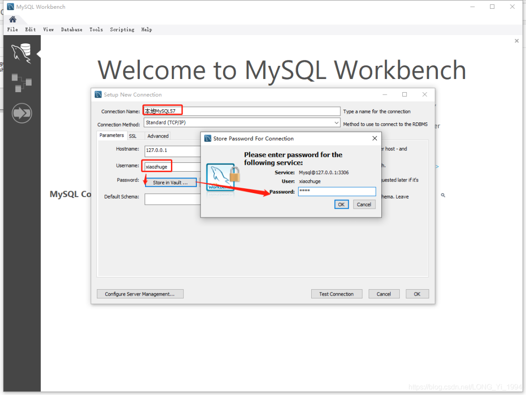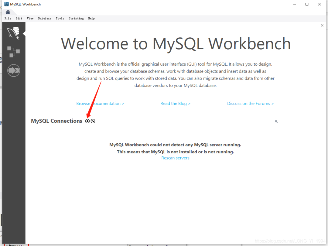 由于安装MySQL的同时也安装了MySQL的图形化管理界面MySQL Workbench,我们可以使用Workbench连接MySQL,点击加号添加MySQL连接。