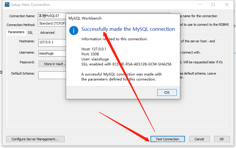 填写好连接信息后,点击Test Connection测试连接,可以看到连接成功。