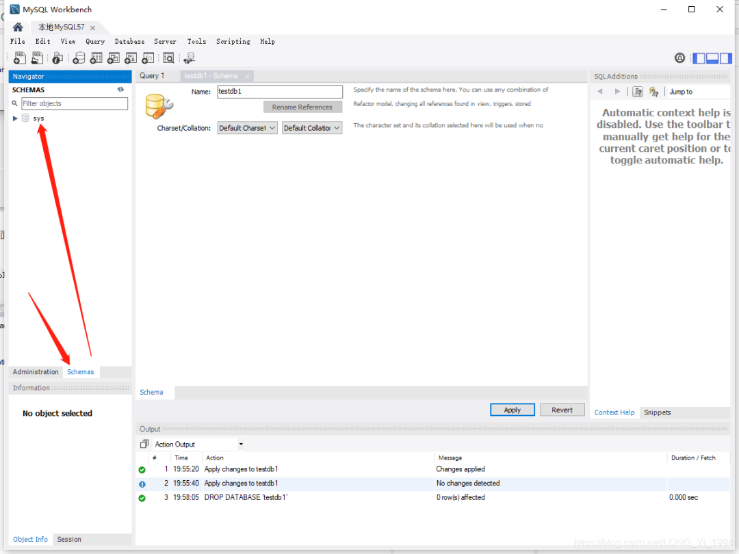 测试连接通过后,点击OK进入数据库管理页面,可以看到一个系统库sys。