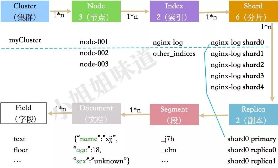 | Feild | 字段,文档中的某个字段,可以有不同的类型 |