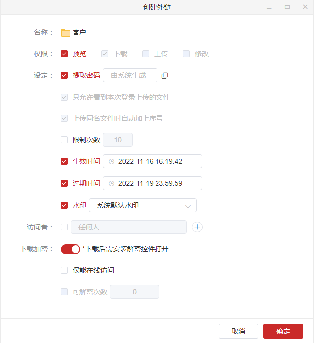 私有云盘不需要使用445、139等高危端口,通过内置的权限、云链、IM、外链4种分享方式,就能实现企业内外部安全高效的文件共享。