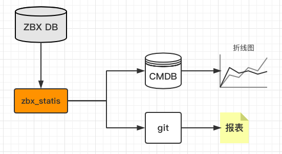 其中核心部分zbx_statis,其实就是我编写的一个python脚本,它会从zabbixDB中查询过去一周的所有报警信息,并按不同维度统计每周的报表上传到公司的git上,同时将一条汇总的sql插入到cmdb的库表中展示。