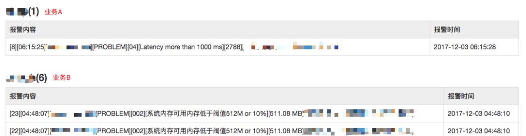 通过维护一个主要业务列表,然后根据hostname匹配可以从业务纬度进行统计; 通过将报警类型规范化,用固定的格式放在报警信息的固定位置,可以按类型进行统计。