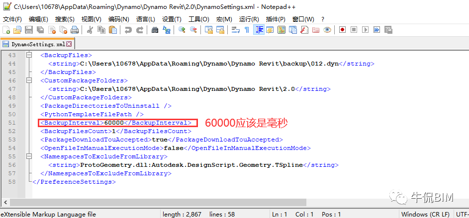 C:\Users\Username\AppData\Roaming\Dynamo\DynamoRevit\2.0\DynamoSettings.xml,我们打开这个文件