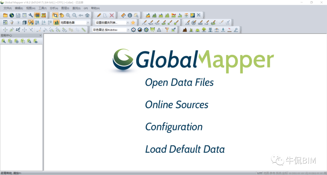 ➤首先确认你已经是开启了科学上网,之后打开Global Mapper软件,界面如下: