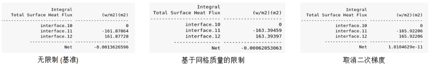 3)取消二次梯度。二次梯度是通量方程中的一个修正项,用于非理想形状网格(垂直于面的通量矢量不通过单元中心),网格偏斜越大,二次梯度的影响越大,当网格质量差时,取消二次梯度一般能提高收敛性。需要注意的是,如果使用各向异性或正交性热导率,二次梯度很重要。