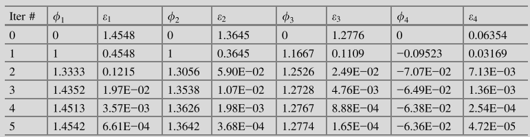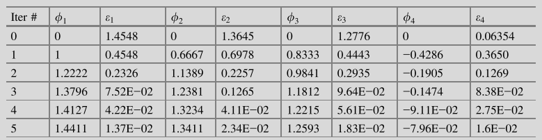 以相同的方式继续计算,并将上一个迭代步的结果作为下一个迭代步的猜测值,如下表所示。