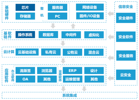 应用软件:应用软件是信创需求方会较早采购的项目之一,其与国产基础软硬件的适配性是客户考量的重点。