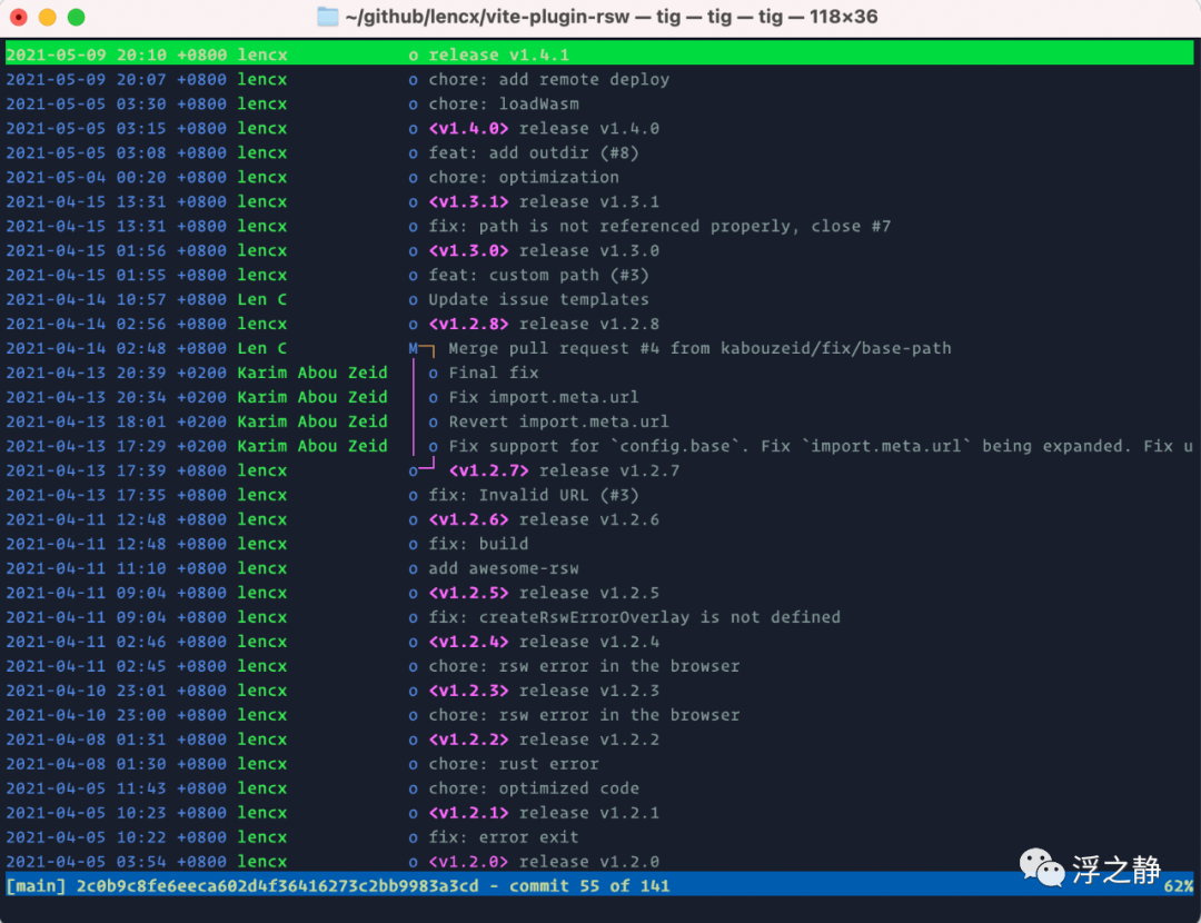 tig[17] - Git 的文本模式界面。
