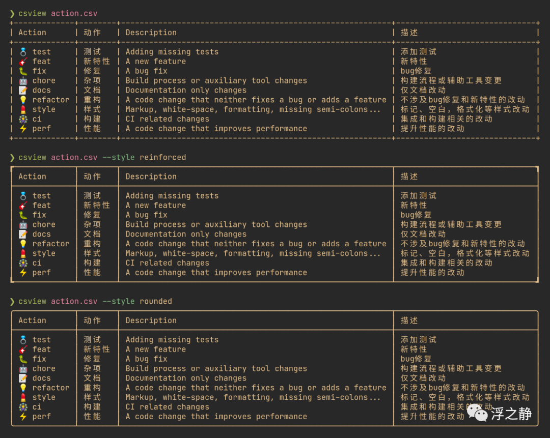 csview[34] - 带有 cjk[35]/emoji 支持的 cli 的漂亮 csv 查看器。
