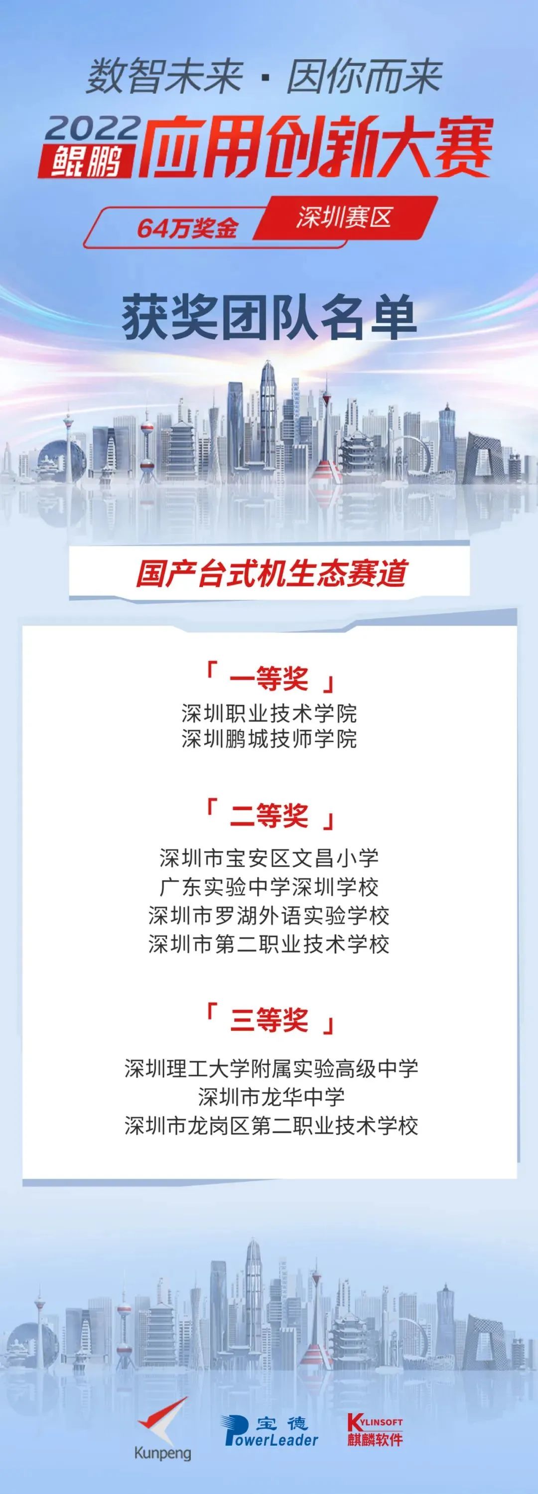 11月15日,以“数智未来 因你而来”为主题,由深圳市工业和信息化局、深圳市南山区人民政府指导,鲲鹏产业源头创新中心(深圳)有限公司主办,麒麟软件有限公司、宝德计算机系统股份有限公司协办的鲲鹏应用创新大赛2022深圳赛区国产台式机生态赛道经过激烈的比拼与角逐,最终9支队伍脱颖而出,荣获大赛奖项。