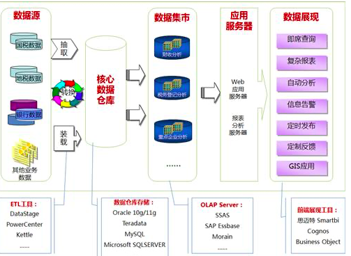 但是对于中大型企业,考虑到日常事务多,数据量大,数据库往往要做更多的写优化,在这样的背景下通过构建数据仓库,将数据通过ETL过程抽取到数据仓库,在此基础上利用BI工具做数据分析与前段展现会更加高效。