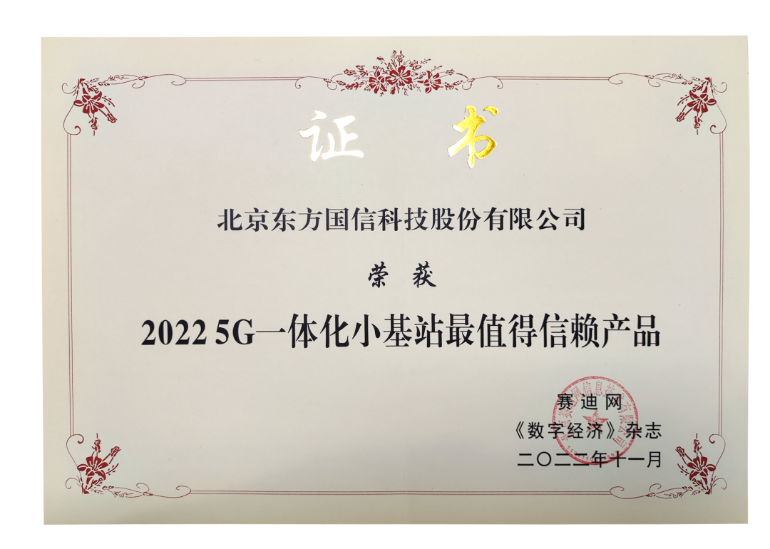 5G技术研发作为东方国信研发战略之一,在过去两年时间里聚焦行业客户需求,相继开发了5G分布式小基站、5G室外型大功率基站。2022数字经济大会上,东方国信重磅发布了业界首款基于国产SoC芯片的5G一体化小基站,为开拓数字经济发展新局面注入“强动能”。