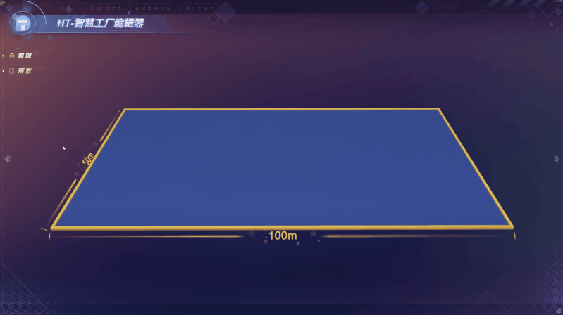 编辑器左侧菜单栏有编辑和预览两个按钮,点击编辑按钮可进行三维组态的新建和保存,保存后可点击预览查看效果。底部的拓扑组件,可自由点击并拖拽到绘图区组合成一条生产线,可快速排版和修改样式。用户可根据车间的生产流程摆放设备,线上还原产品的生产工艺流程。
