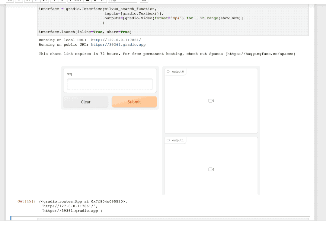 为了更方便地使用这个「视频检索」服务,我们可以借助 Gradio 来部署一个可交互的在线可玩 Demo[18]。