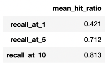 .evaluate['ground_truth', 'top10'](name='recall_at_10' "'ground_truth', 'top10'") \
