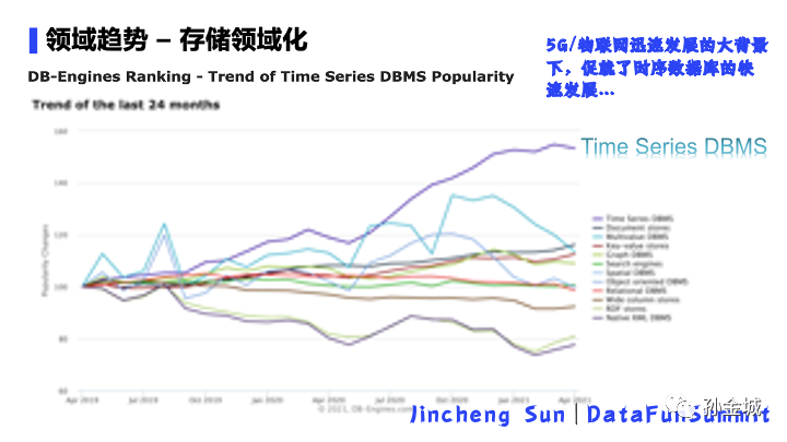 根据DB-Engines的统计数据,我们发现,在各种数据库存储产品中,时序数据库的发展是最受欢迎,发展是最快的。