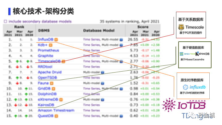 第三类就是专门面向时序数据场景的原生时序数据库,比如InfluxDB,IoTDB和TDengine等。