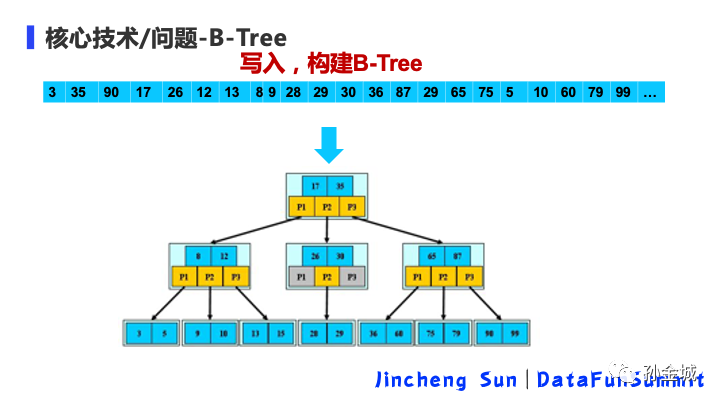 假设我们有如上数据按顺序进入存储系统,如果存储系统采用的是BTree进行
