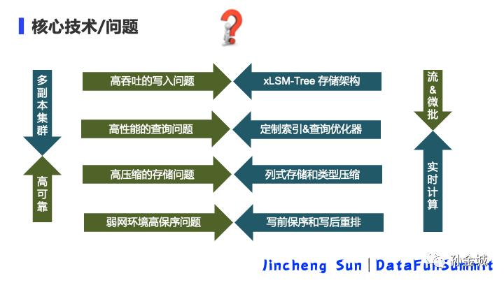 第四个也是非常重要的领域问题,就是乱序的解决,利用写前保序和写后重排多种手段在存储层面解决乱序问题。进而在后续的计算分析部分发挥最大的价值。那么大家想想除了上面核心的四个方面还有其他关键问题和技术需要关注吗?